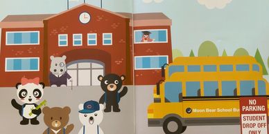 Mumu and Magoo go to Moon Bear School. They have many friends there. They learn and play together. At Moon Bear School, there are moon bears, panda bears, black bears, koalas....and many more.